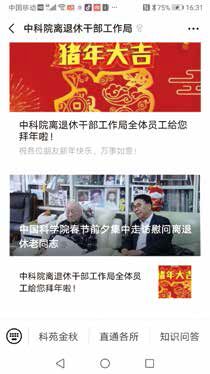 目前,中國(guó)科學(xué)院離退休干部工作局的這三個(gè)微信公眾號(hào)在老同志中均樹(shù)立了良好口碑。為老同志開(kāi)展學(xué)習(xí)教育、豐富文化生活、參加組織活動(dòng)等提供了更多便利和更優(yōu)服務(wù)。